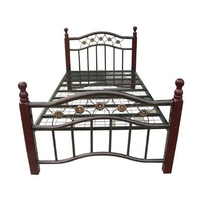 3093 Size: Queen Features: -Bed. -Bed finish: Hammerton bronze. -Leg finish: Deep cherry. -38mm Sturdy metal and wood construction. -Available in Twin, Full, or Queen sizes. -Floral design . -Assembly required. -Manufacturer provides one year warranty on parts replacement. Specifications: -Twin bed dimensions: 35.4'' H x 80.4'' W x 39'' D. -Full bed dimensions:52'' H x 54'' W x 75'' D. -Queen bed dimensions: 57'' H x 60'' W x 80'' D..../ Metal Bed with Deep Cherry Legs in Hammerton Bronze Size: Queen / Twin Size Futon